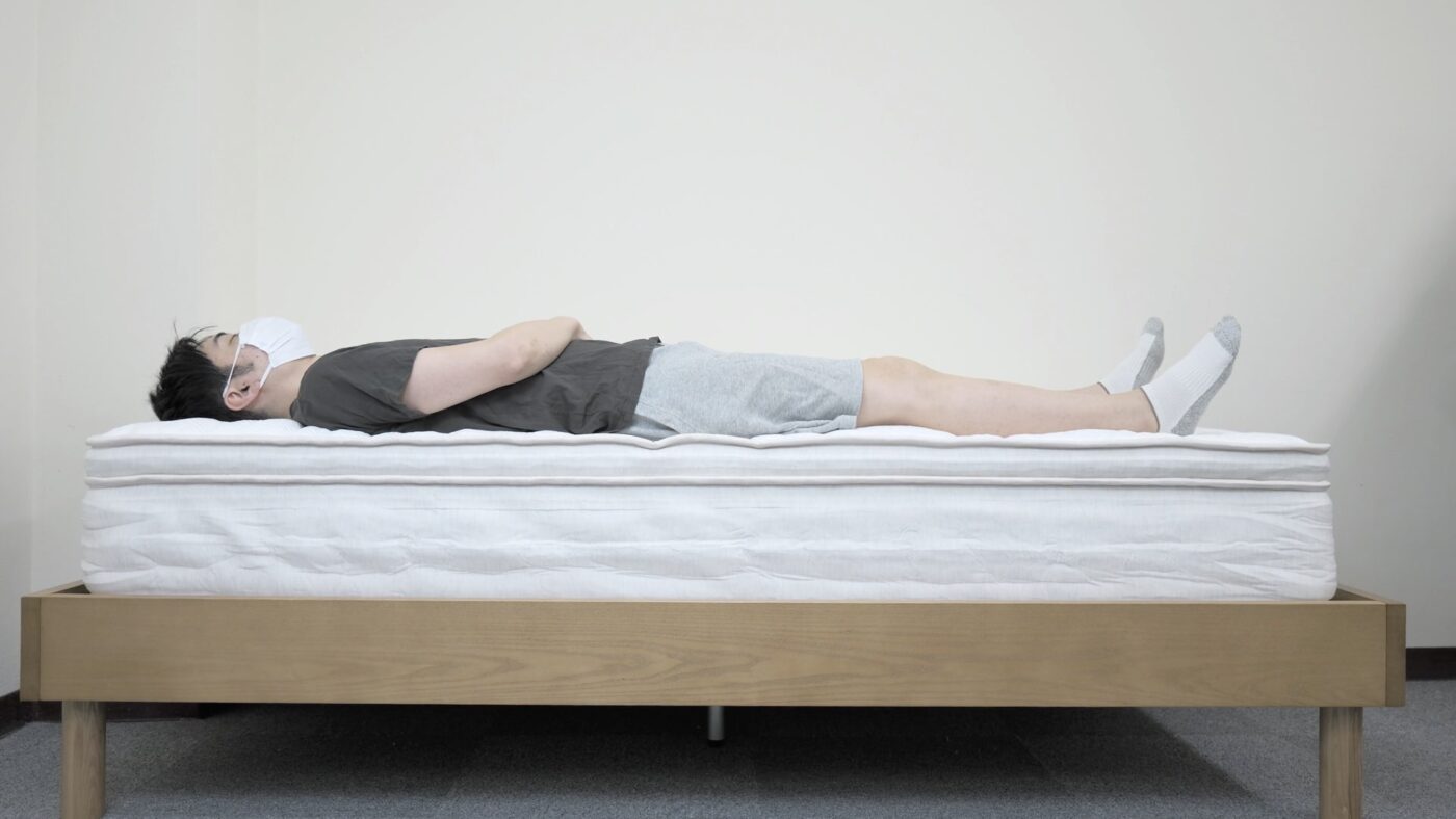 臀部など重たい部分がゆっくり沈み込む一方、マイクロコイルの反発が体を下からふんわり押し上げ、背骨は自然なS字カーブを保ちます。
