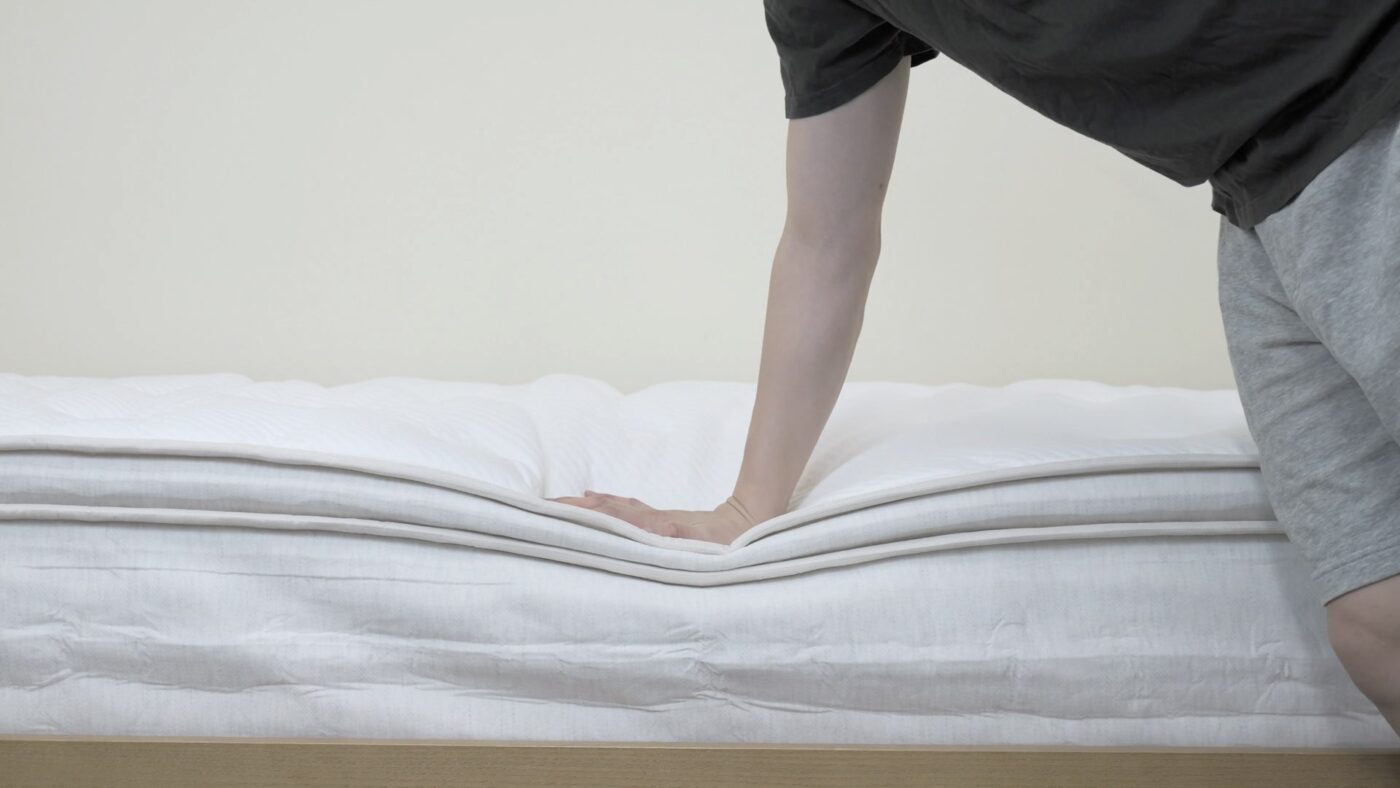 上層の分厚いBOXトップが体を優しく受け止めるため、横になった瞬間はふんわり沈み込む柔らかさを感じますが、下層のコイルがしっかり支え返してくれる安心感も同時に得られます。