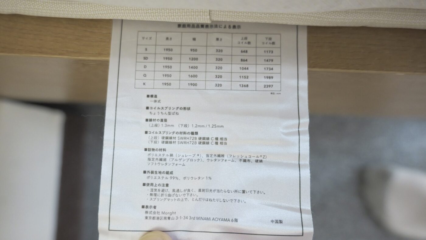 | 厚さ | 約32cm(ベッドフレームの上に敷く) |