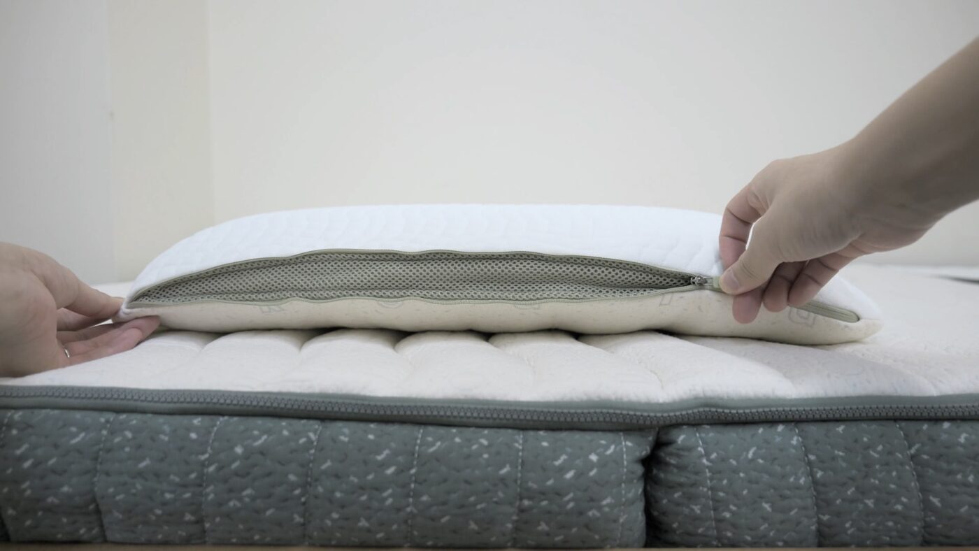コアラピロー(2nd Gen)には高さを変える調整パッドや中材の出し入れ機能はありません。調整パーツがない分、届いてすぐシンプルに使えます。ただし、側面のファスナーで硬さ調整ができ、これにより間接的に高さ感を変えることが可能です。